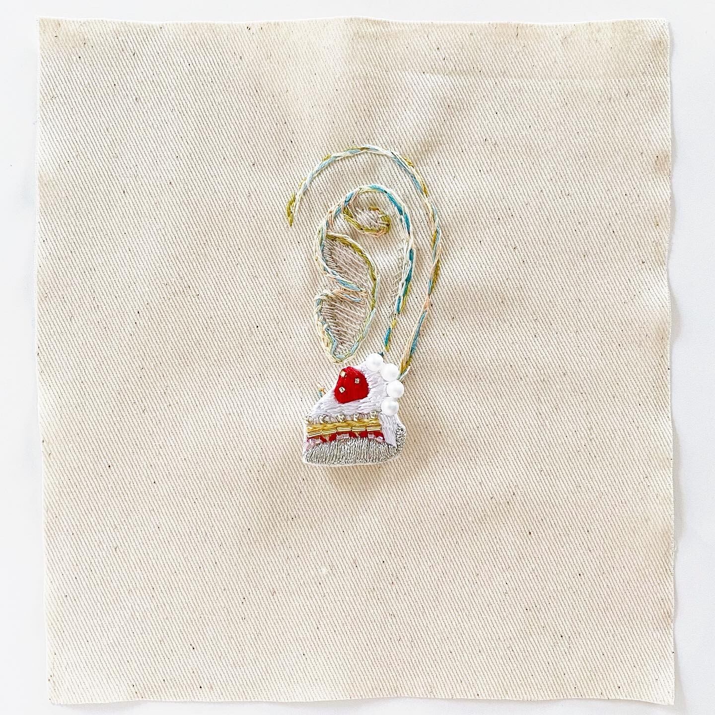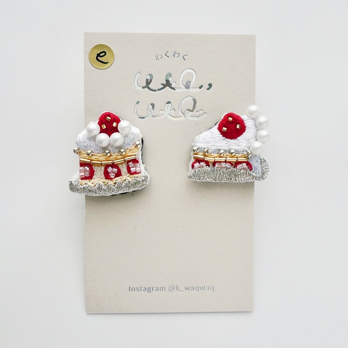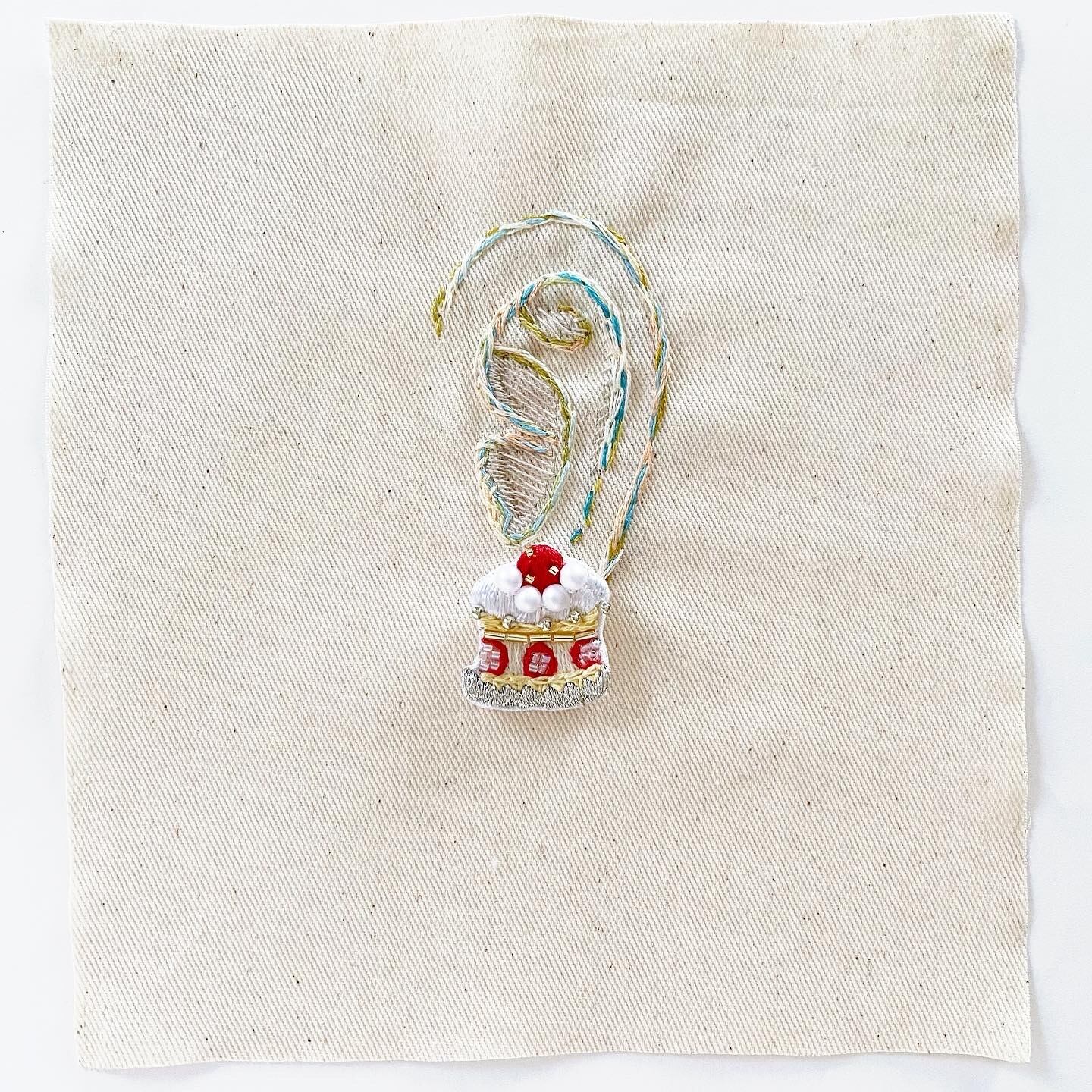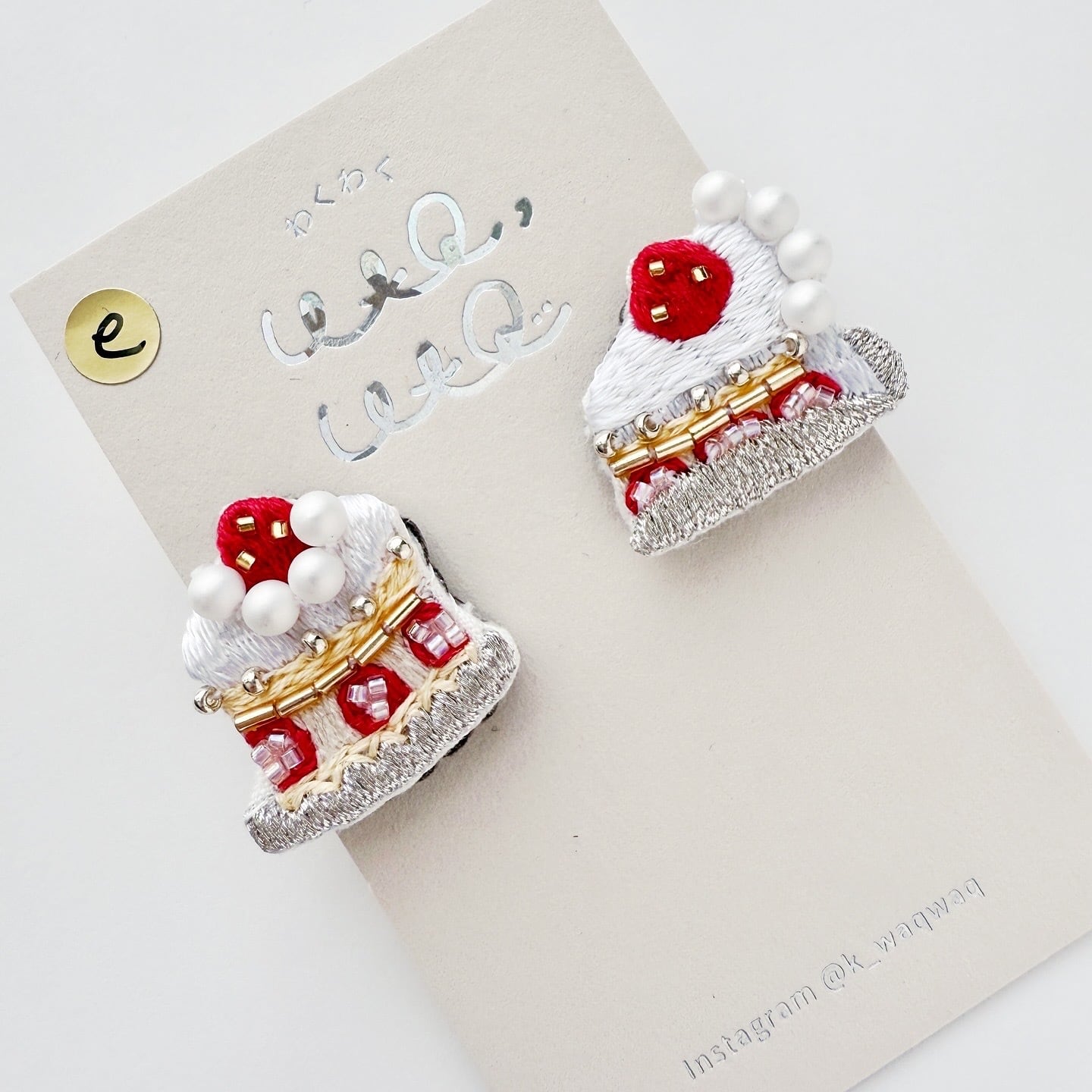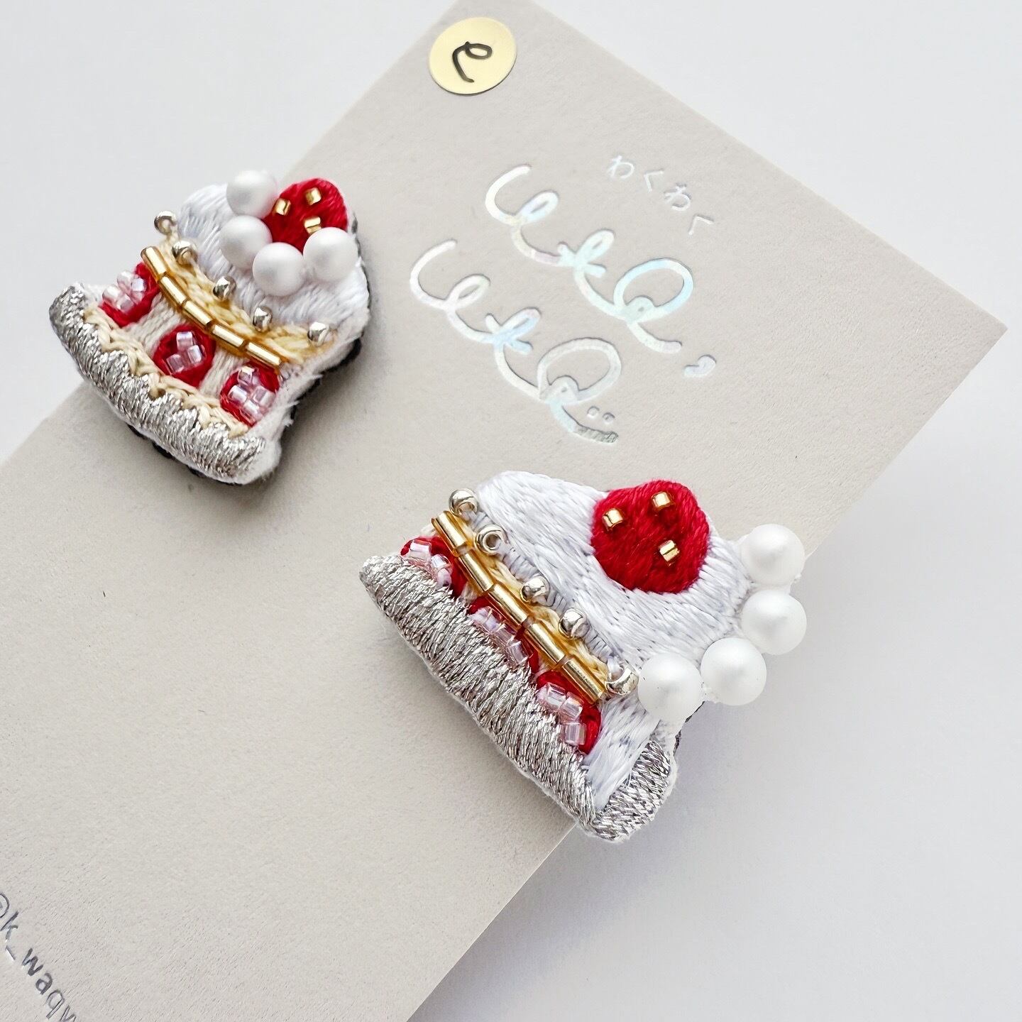 シルバーの糸とビーズにちょっとだけゴールドも足した色合いが少し着飾ったショートケーキみたいでとってもかわいいです