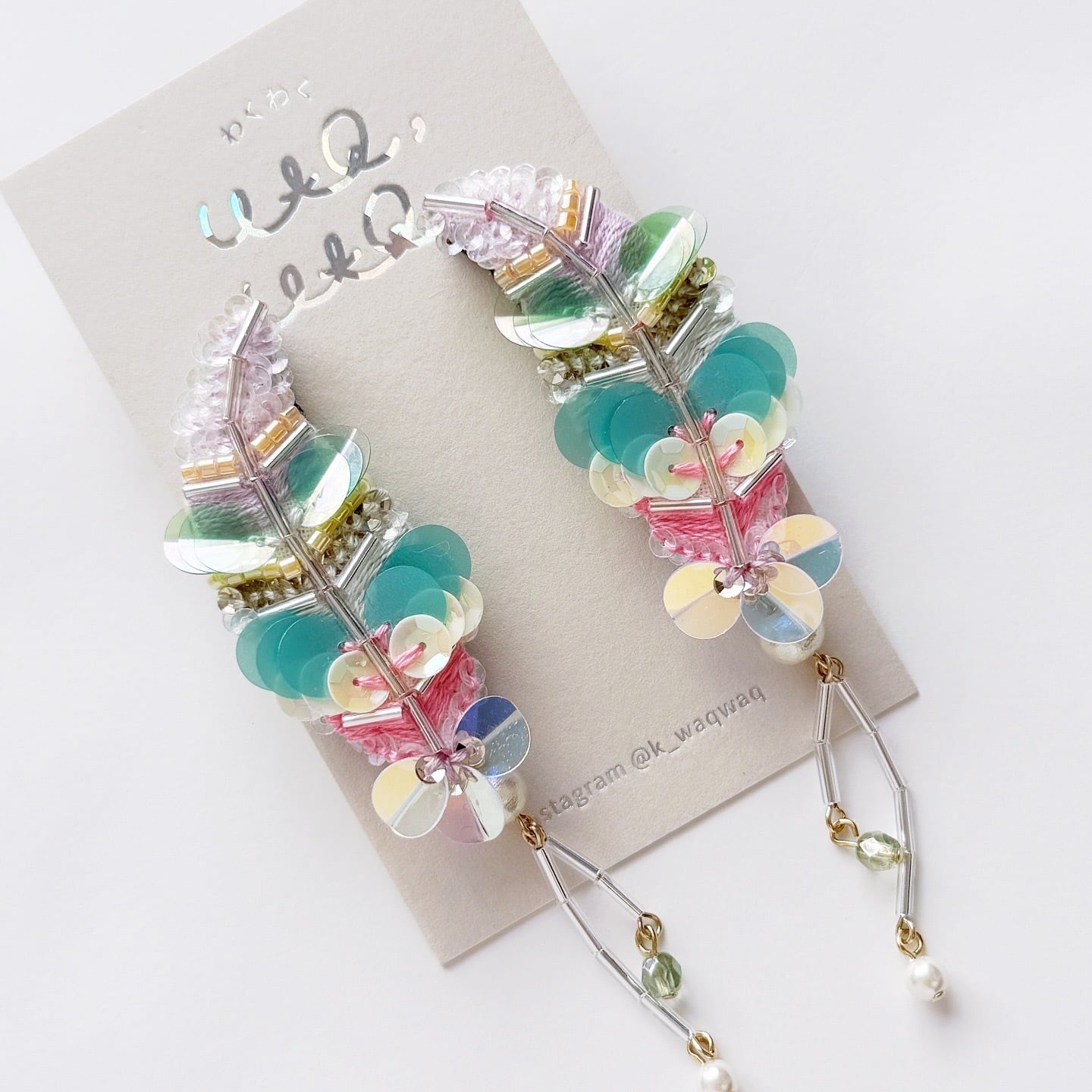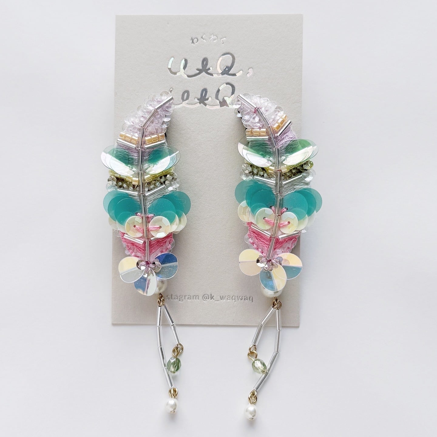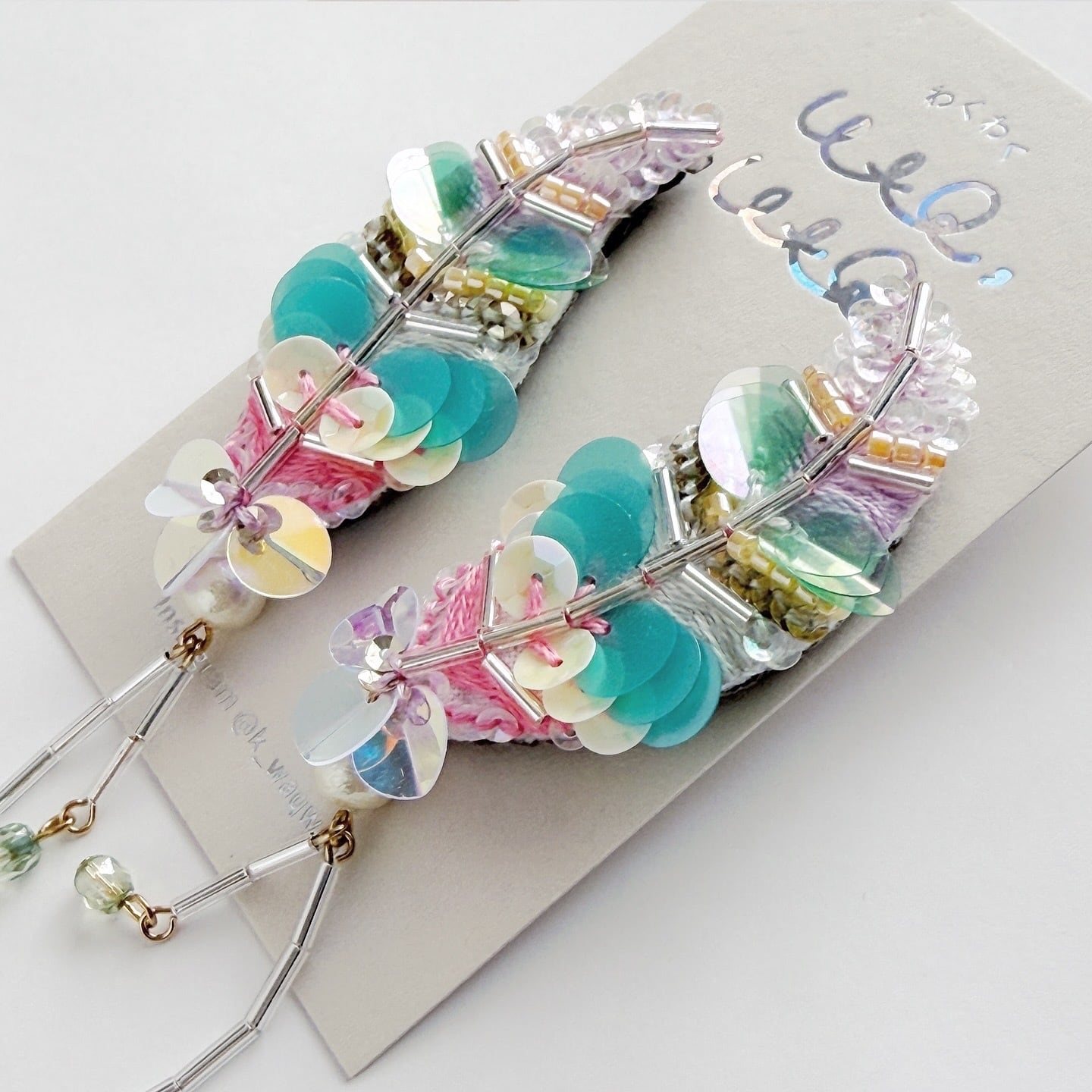 スパンコールやビーズ、刺繍糸で作ったキラキラと輝く宝石の羽