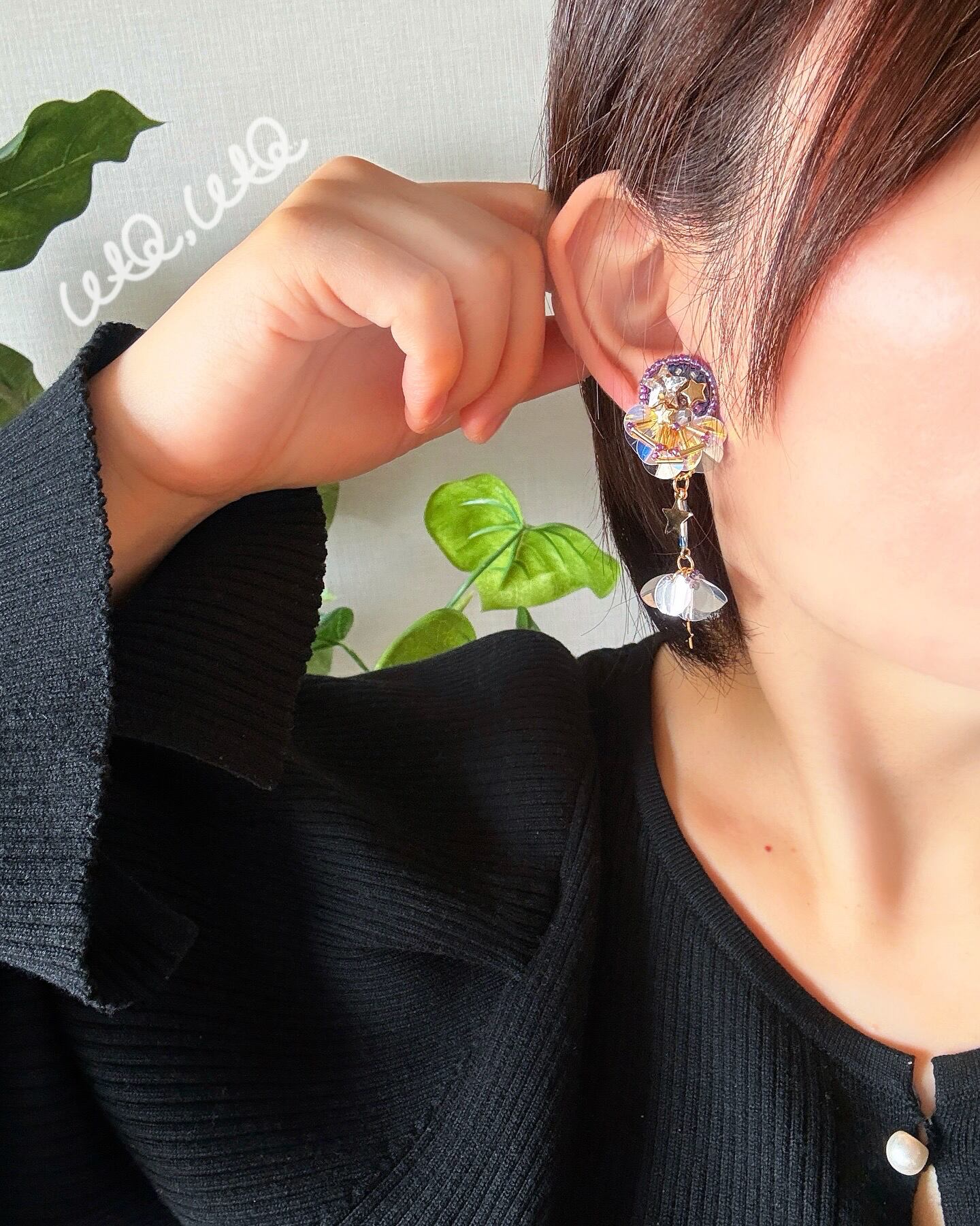 可愛く美しく手刺繍で繊細なデザインに仕上げた星座モチーフの耳飾り